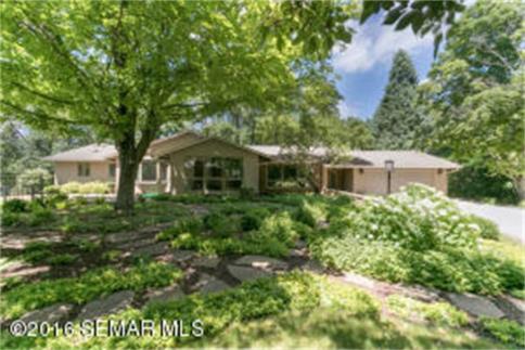 This spectacular ranch home is located on a very private 4.91 acre wooded homesite right in town. Gorgeous views from every room including an excellent view of the pool house and brand new pool from the lovely kitchen/dinette area. Custom maple cabinets, newer stainless steel appliances, travertine marble and hardwood flooring.
