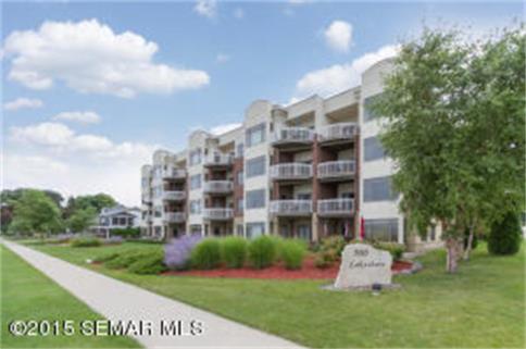 The pride of ownership is evident the moment you open the door. Gorgeous cherry wood floors, paneled doors, beautiful cherry cabinets w/granite countertops. An incredible view of Lake Pepin from this main floor 2 bedroom end unit. Fabulous patio that extends off the master & living room, large open floor plan, huge windows, gas FP & so much more. All this plus underground heated parking spot.